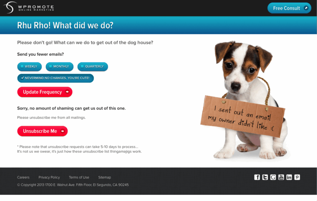 One way to make sure you’re hitting the email frequency sweet spot is by splitting up your contact list through segmentation. Try building this option in when the user is first signing up for emails, so they can choose how often they want to receive communication or which types of emails they’d like to receive. Also implement this on your unsubscribe page.