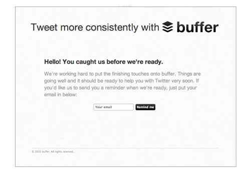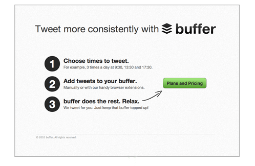 Buffer, zum Beispiel, hat eine Landing Page erstellt, um ihre Idee zu bestätigen, bevor sie ihr echtes Produkt auf den Markt bringen. Sie starteten eine Landing Page mit einem Logo, einigen Kernbotschaften über das Produkt, das sie bauen wollten, und einem einzigen Aufruf zur Aktion – „Pläne und Preise“.