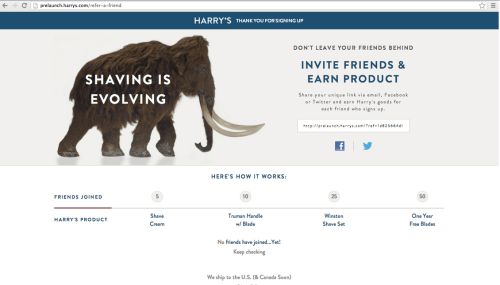 Im Vorfeld der Markteinführung belohnte Harry’s Benutzer, die ihre Freunde und Familie eingeladen hatten, indem sie ihnen kostenlose Produkte schenkten.