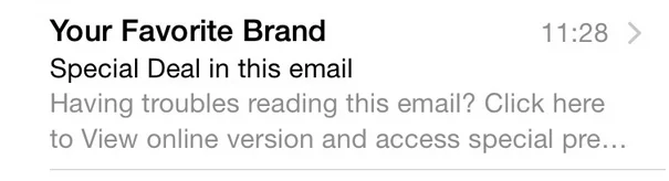 Como se suele decir, la primera impresión es la que cuenta. Es probable que más de una vez te hayas pasado horas preparándote para una entrevista de trabajo, eligiendo el mejor modelo para una primera cita o buscando un taxi para evitar llegar tarde a un evento importante. Cuando hablamos de email marketing ocurre exactamente lo mismo. Cuando uno pasa horas redactando un email, lo que quiere es estar seguro de sacar el máximo provecho de los pocos minutos (o segundos) en los que su mensaje permanecerá en la parte superior de la bandeja de entrada del destinatario. La mayoría de publicistas se centran en incluir el nombre del destinatario o pulir bien el título del asunto, en probar diferentes variaciones hasta encontrar la mejor combinación que le garantice una tasa de apertura alta. Sin embargo, un elemento del que se habla menos pero que es igualmente importante es el pre-encabezado. Casi todos los principales servidores de correo electrónico incluyen este breve resumen al comienzo del mensaje HTML. En el escritorio se muestra a continuación del asunto y en los dispositivos móviles, justo debajo del mismo.