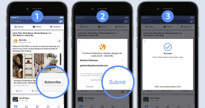 Mais cela ne suffisait pas, car seules les personnes visitant le site étaient au courant de l’existence de cette newsletter. Qu’en était-il de ses followers sur les réseaux sociaux ou des utilisateurs ne connaissant pas encore sa marque ? C’est là que les publicités à formulaire Facebook entrent en jeu : en facilitant l’accès à votre newsletter, vous augmentez considérablement le nombre d’abonnements.