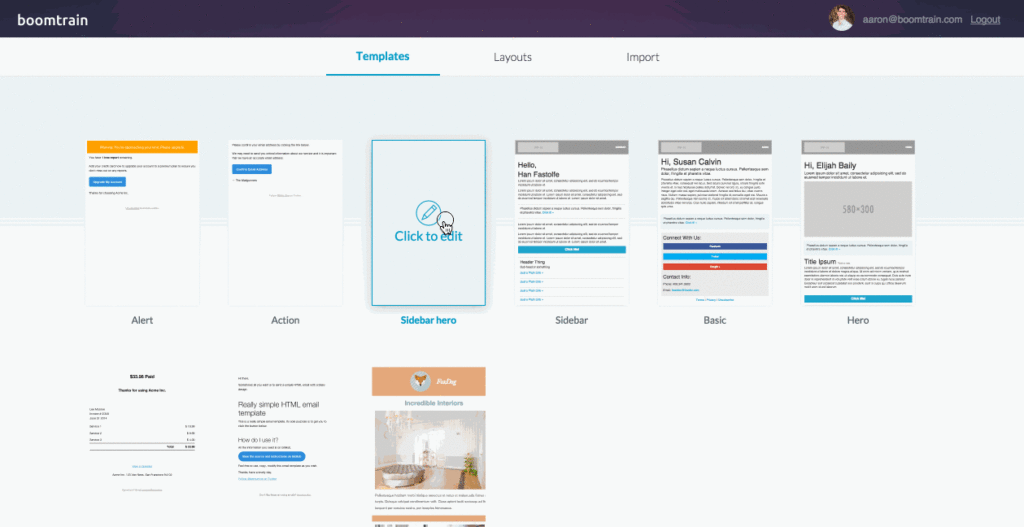 Choisissez un modèle dans la bibliothèque de Boomtrain ou importez le vôtre :
