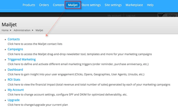 Pour intégrer Mailjet à votre site Drupal, rendez vous sur cette page. Vous pouvez également passer par Commerce Kickstart 2 pour installer Mailjet nativement.