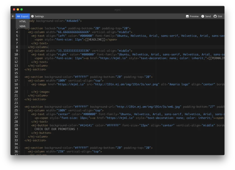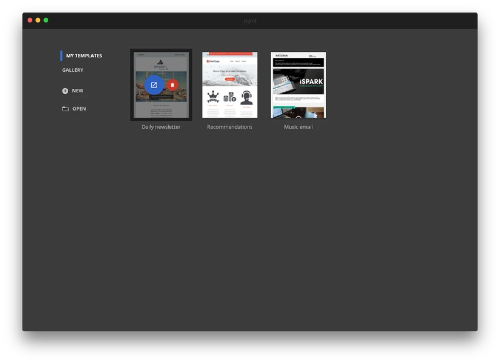L’application MJML fournit une liste de modèles prêts à l’emploi et un éditeur personnalisable, qui vous permet d’expérimenter et de gérer vos emails transactionnels et marketing. Elle est disponible pour OSX, Linux et Windows et peut être téléchargée gratuitement.
